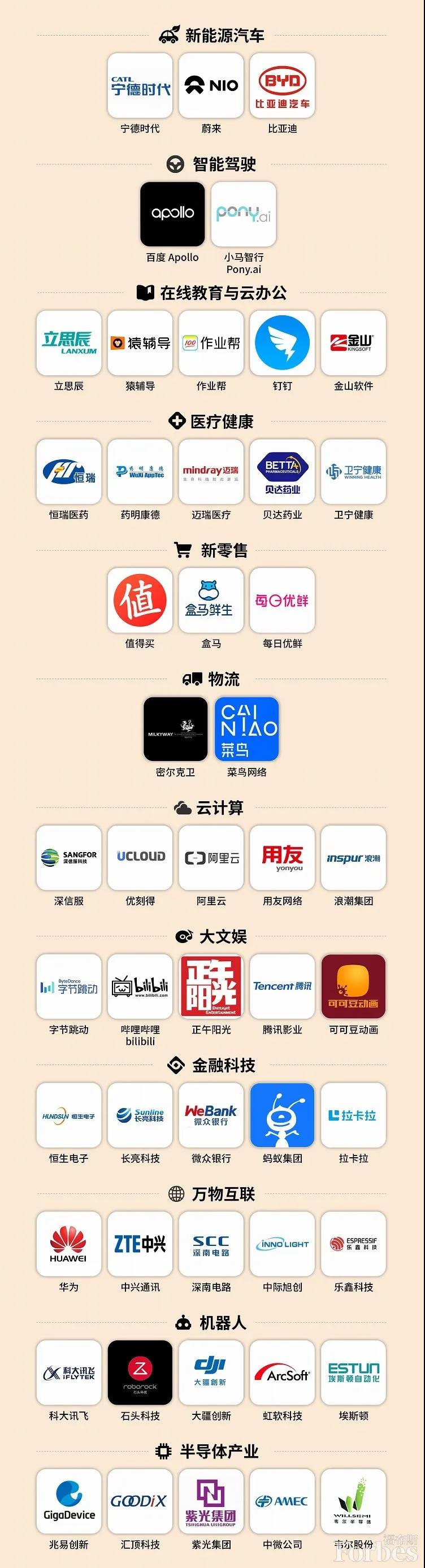 6月22日,福布斯中国发布“2020中国最具创新力企业”榜单,共计提名12个领域的50家中国本土创新企业。