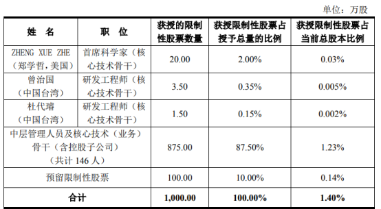 一、拟获授限制性股票的激励对象总体名单
