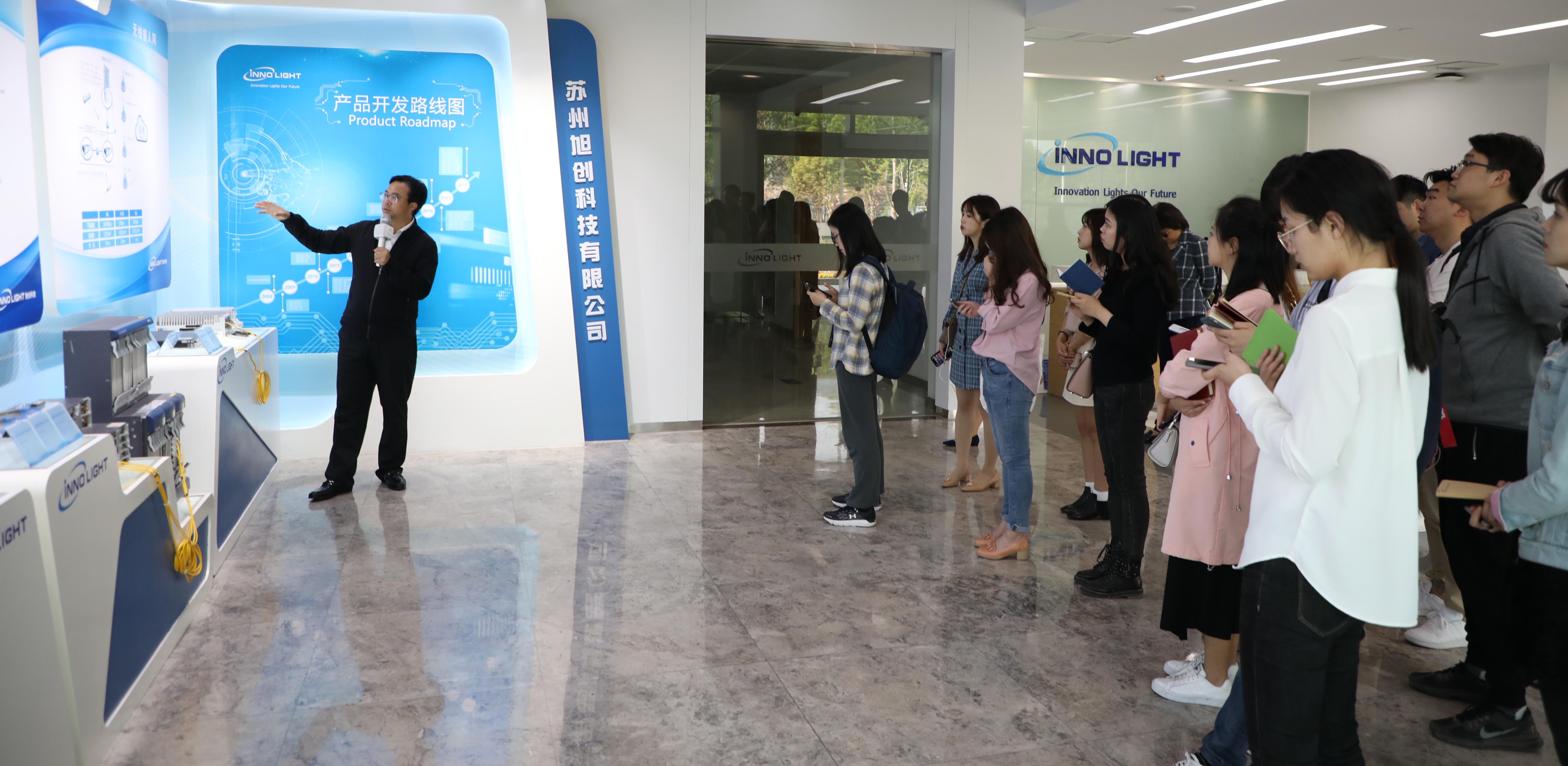 在旭创科技展厅,总经理刘圣向记者朋友深入浅出地讲解了光模块的主要功能、应用领域以及未来的发展方向,同时,他结合公司的发展历程讲述了旭创与园区的渊源。刘圣表示,旭创从一个海归创业的小公司发展为今天年产值几十亿元的光模块行业佼佼者,与园区的支持与帮助分不开——公司创立之初,凭着一纸商业计划书,就拿到了苏州园区给予的第一笔天使投资基金,是园区宽松的政商环境和充分的信任给了旭创冲锋的勇气。